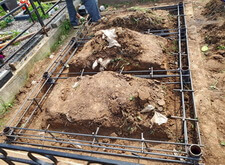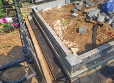 Подготавливаем территорию вокруг места захоронения к покрытию брусчаткой: ввариваем металлическую полосу и укрываем землю геотекстилем.
