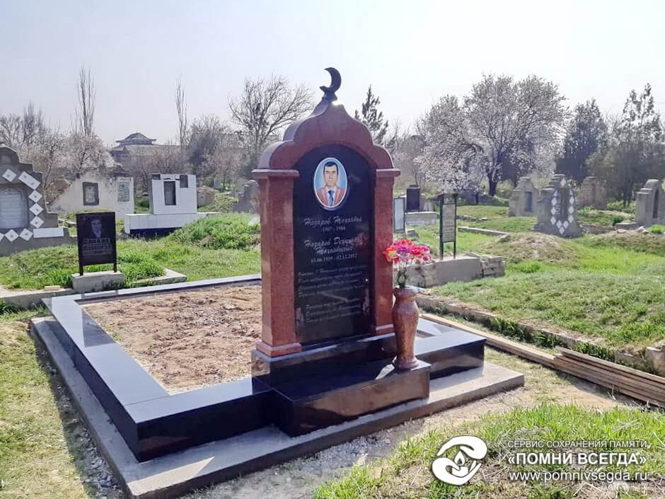 На территории места захоронения был установлен один памятник. Центральная его часть изготовлена из чёрного диабаза, а украшающая арка – из красного лезника. Надгробье украшает фигура полумесяца. На памятник мы нанесли основную информацию о покойном и эпитафию, текст дополнили портретом на керамике.