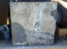 После проведённой работы надгробье стало не узнать: с лицевой стороны исчезли все сколы, трещины, неровности, а также другие изъяны. Обломанную сторону мы оформили краем под естественный скол, добавив памятнику уникальности.