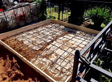 Затем укладываем на территорию места захоронения арматурную сетку, предварительно расстелив на участке геотекстиль.