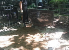 В заключении покрываем надписи на памятнике акриловой краской. Если присмотреться к фотографиям помытого участка, можно увидеть, что текст на надгробье практически не читаем. После окрашивания надпись сохранит свою чёткость в любую погоду. Проведя данный комплекс работ мы сдали объект.