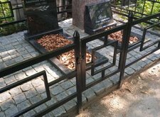 После того, как наземное покрытие высохло после замывки, установили новое надгробье и окрасили ограждение.